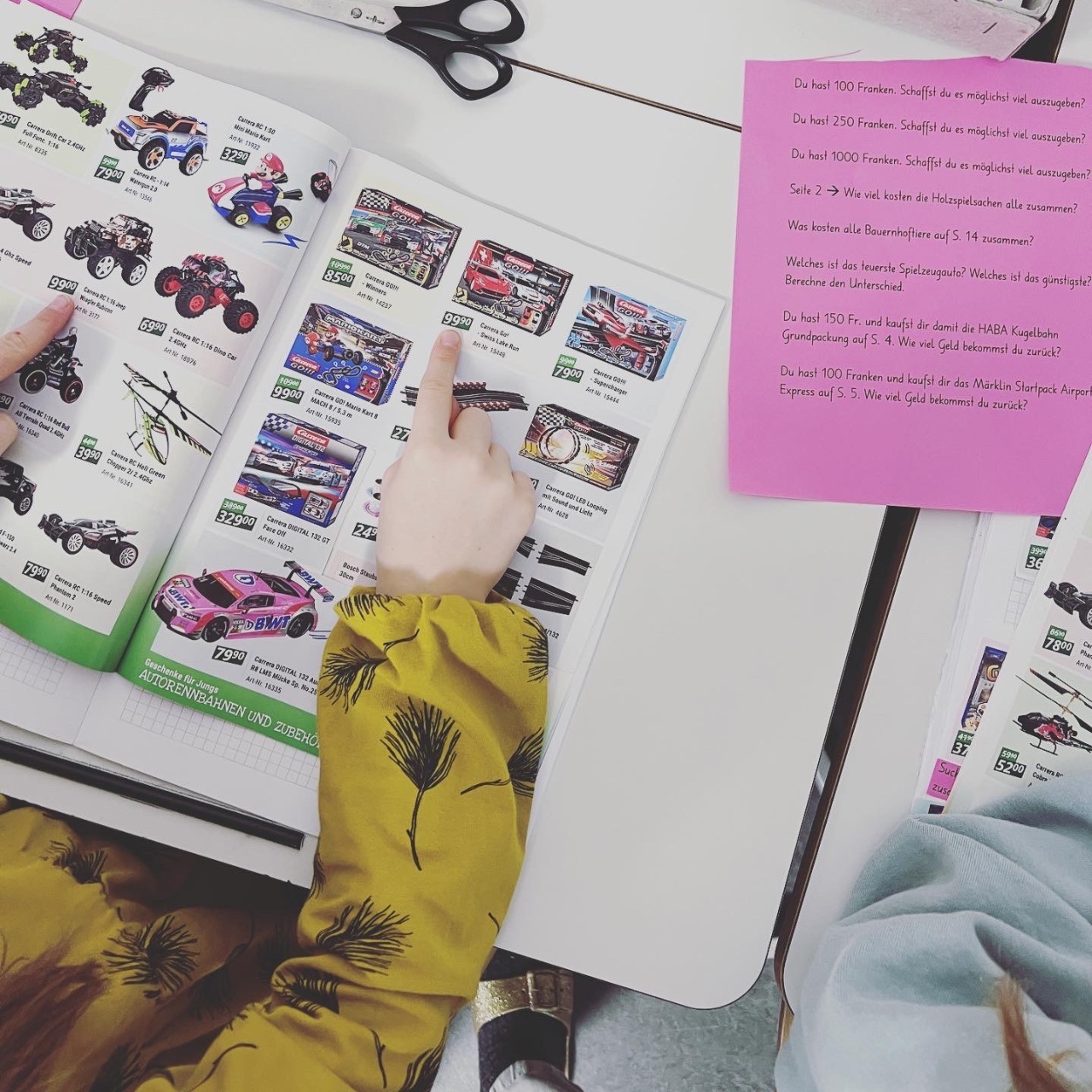 - Du hast 100 Franken. Schaffst du möglichst viel auszugeben? Schaue in den Spielzeugkatalogen. Hier noch mehr Infos dazu.